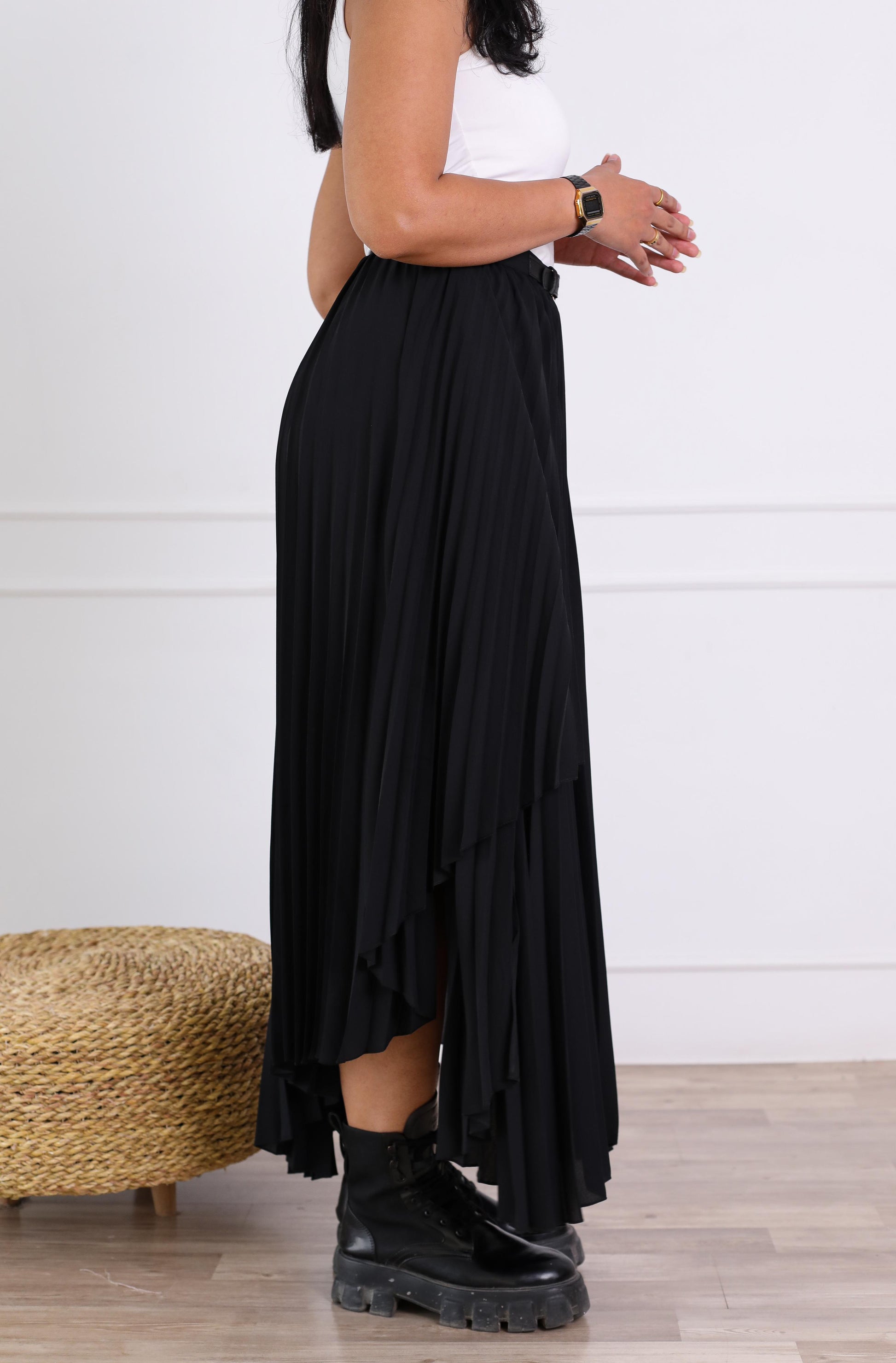 - Sleek Black Belt with a silver-tone ring for a contemporary look