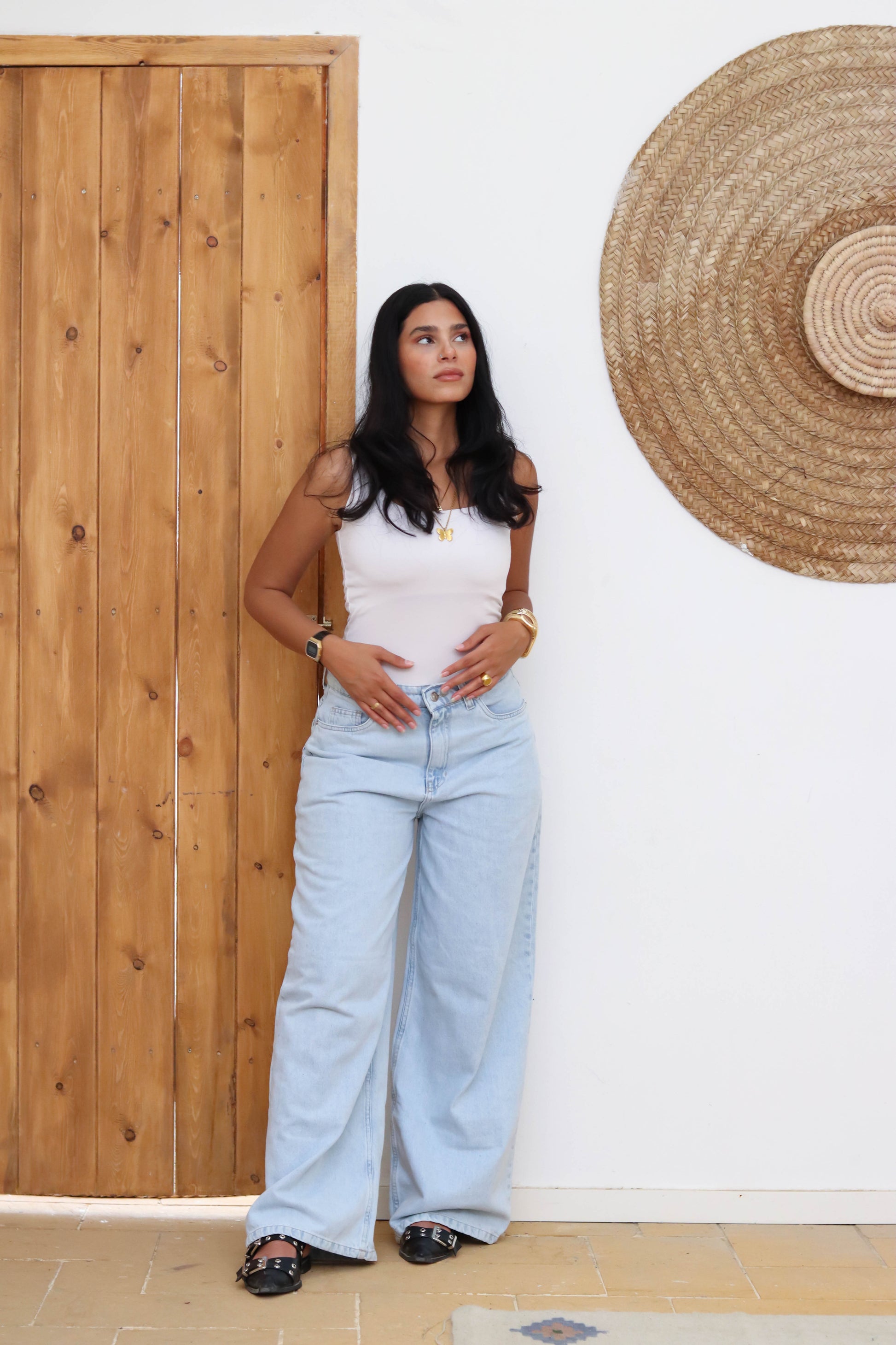Keep it simple and stylish with the Everyday Denim Pants. Featuring a relaxed wide-leg silhouette and soft light-wash denim, these jeans are your go-to piece for effortless everyday outfits. Comfort and style combined, for any day, any time