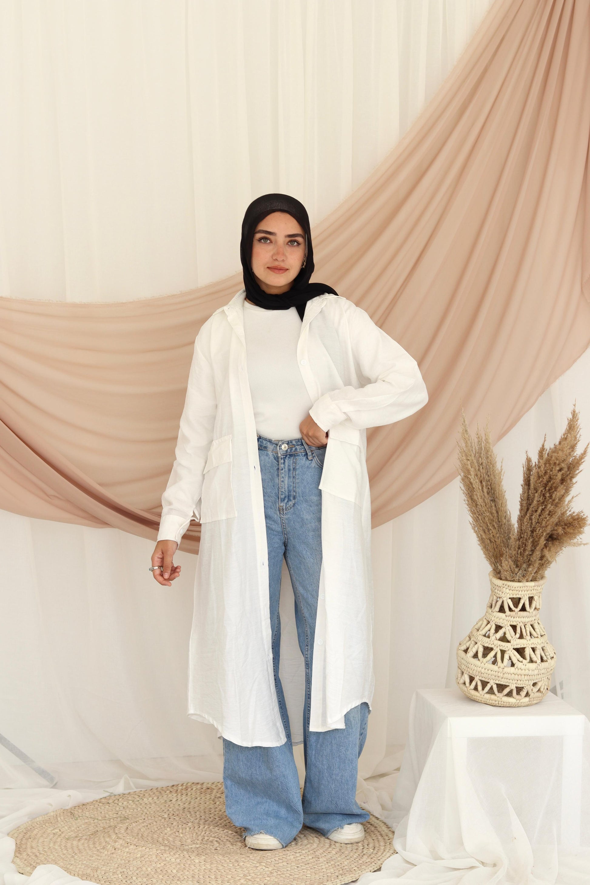 Kimono shirt long free size tell 85kilos length 110cm with two pockets