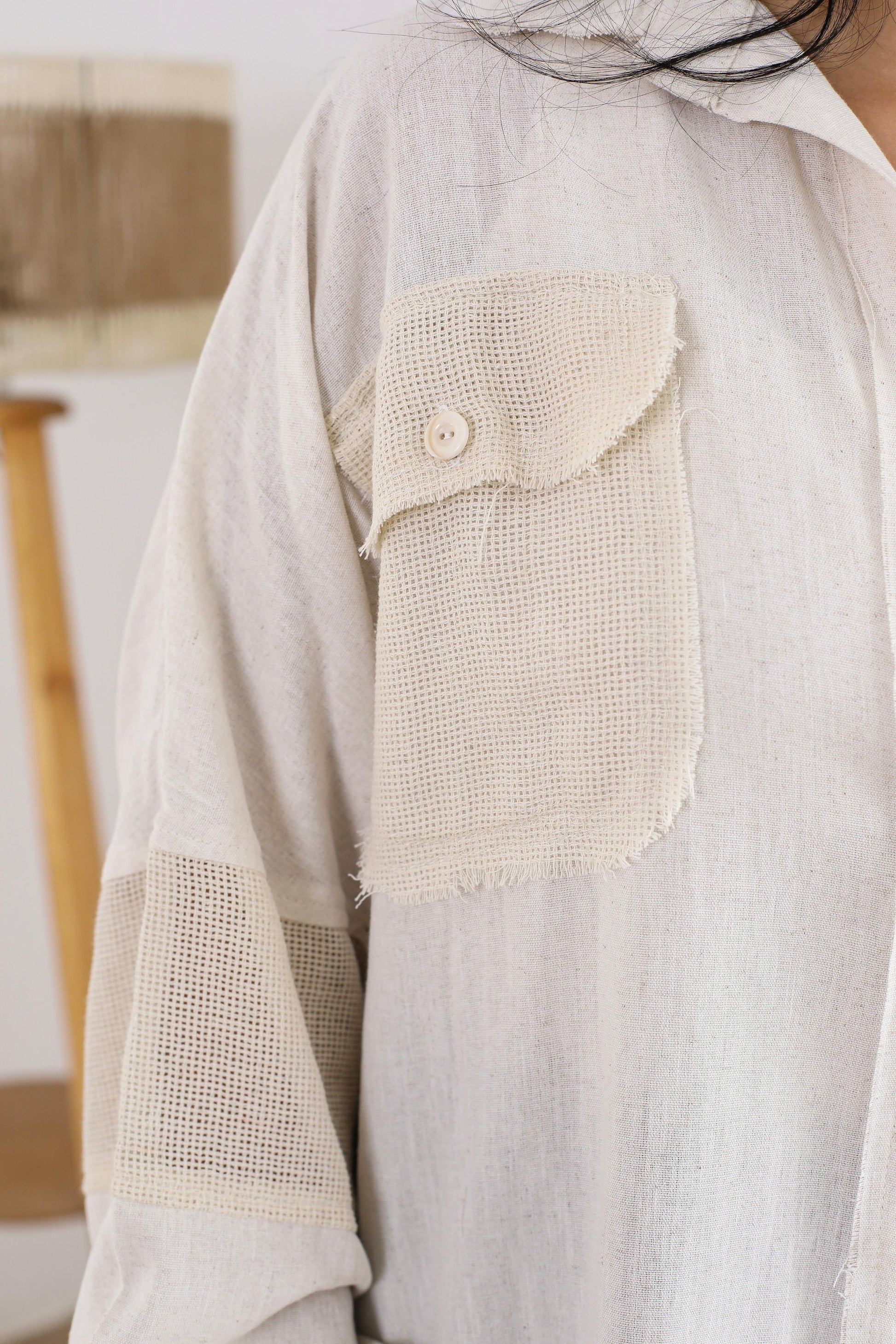 Linen shirt- long sleeves with details at the pockets and sleeves