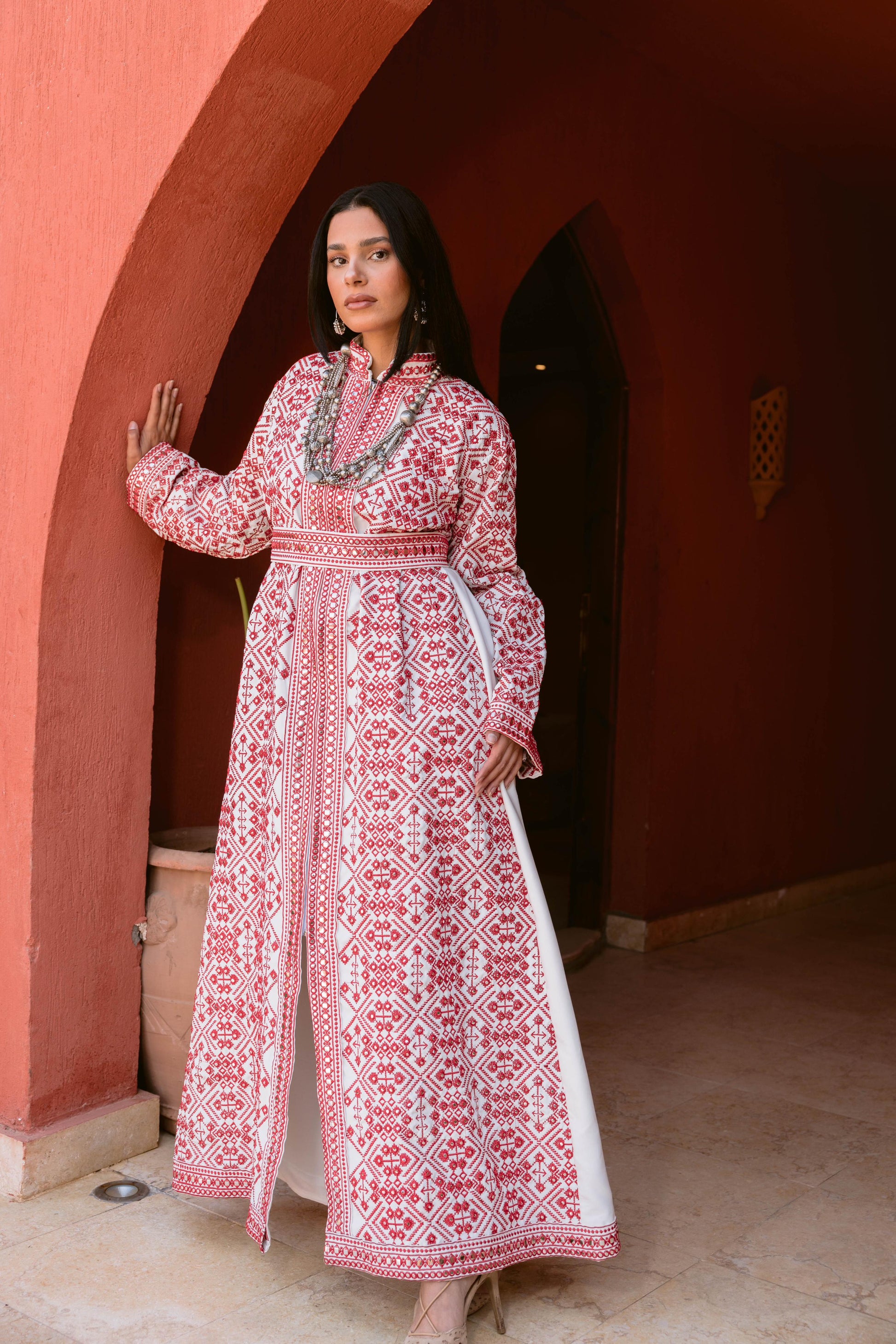 This exquisite kaftan is a perfect blend of tradition and elegance, meticulously handcrafted with intricate embroidery. Designed to capture the essence of luxury, its vibrant red and white patterns showcase skilled artisanship, making each piece unique. The high-quality fabric and fine embroidery elevate the look, offering an unparalleled combination of comfort and sophistication.