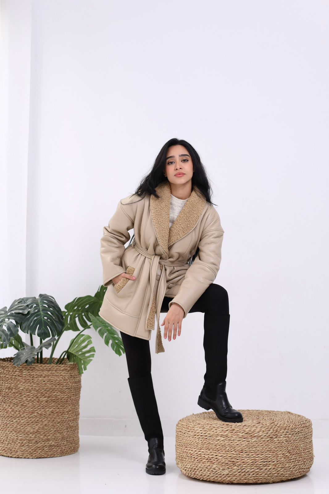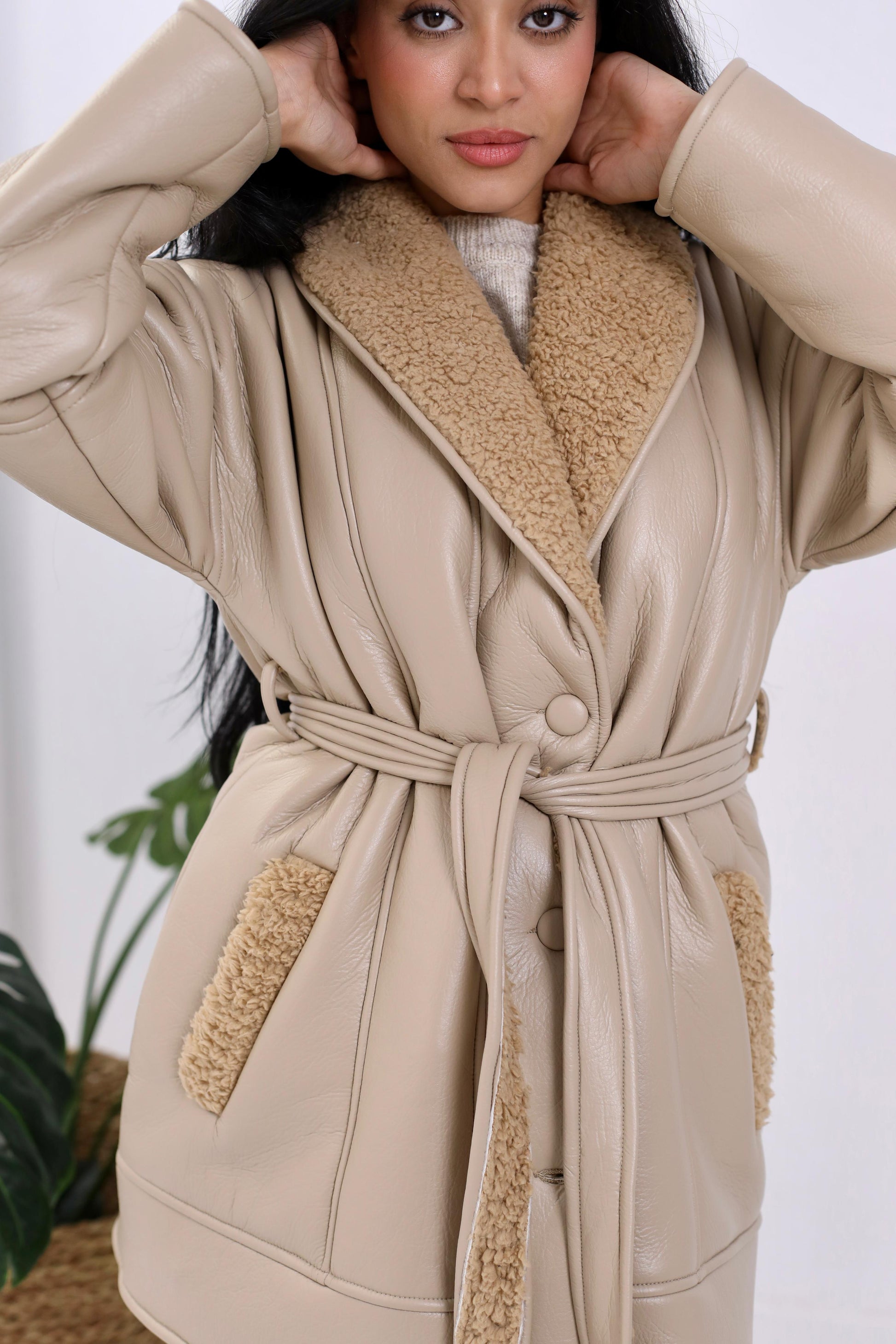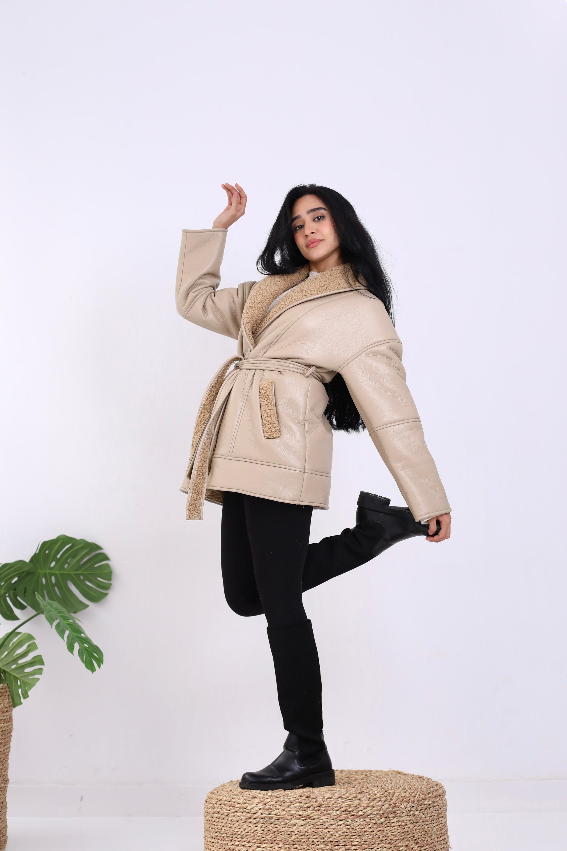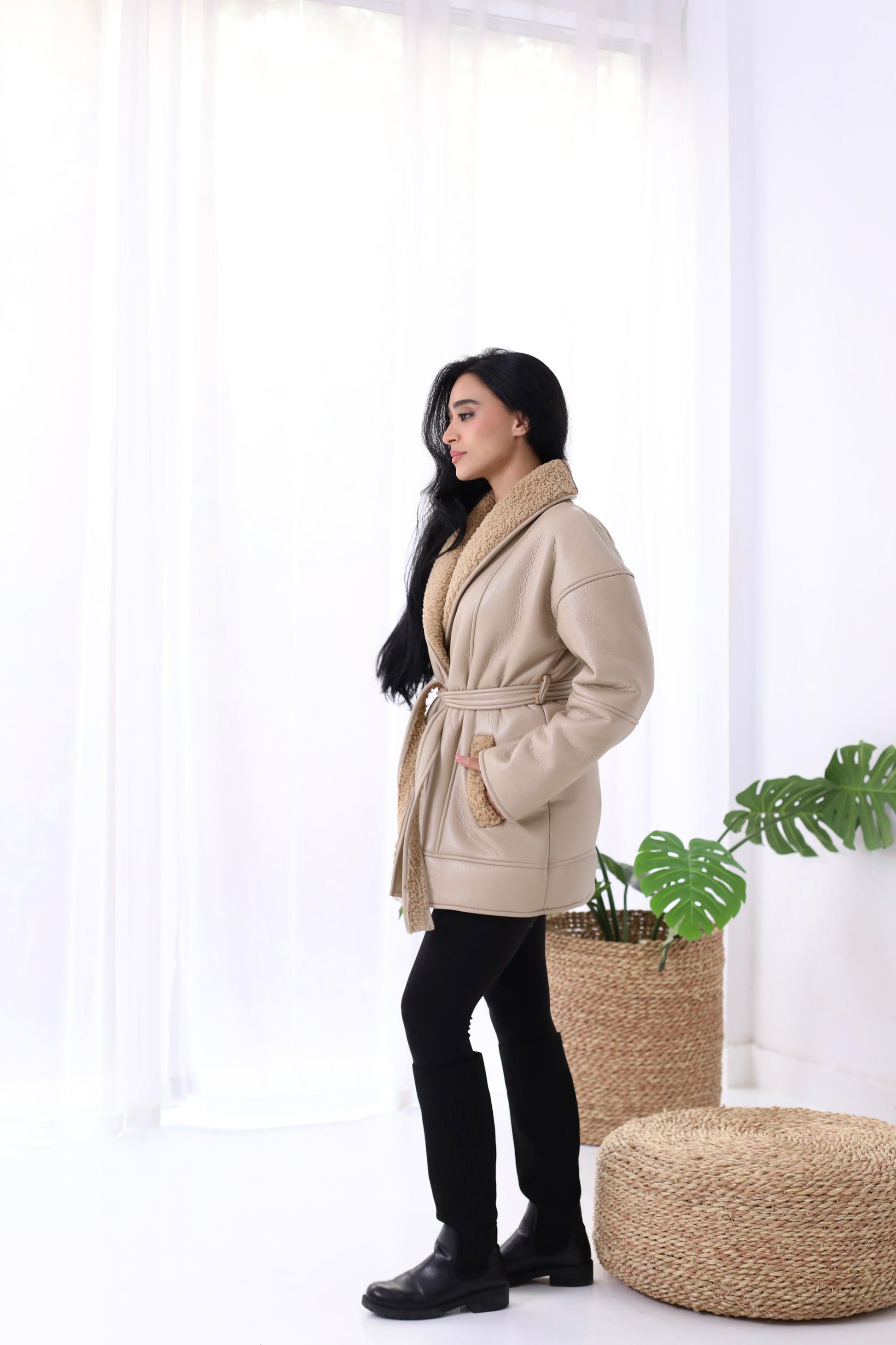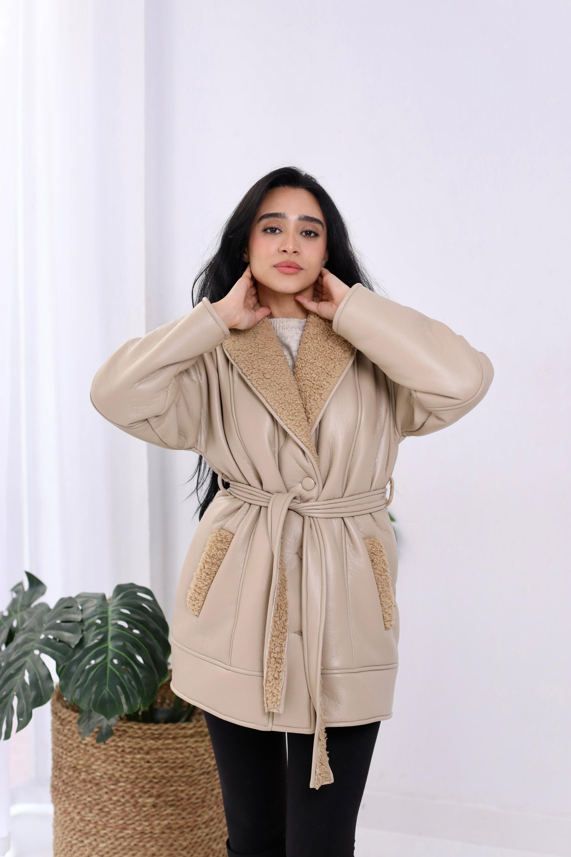 Natural Leather Jacket in biege