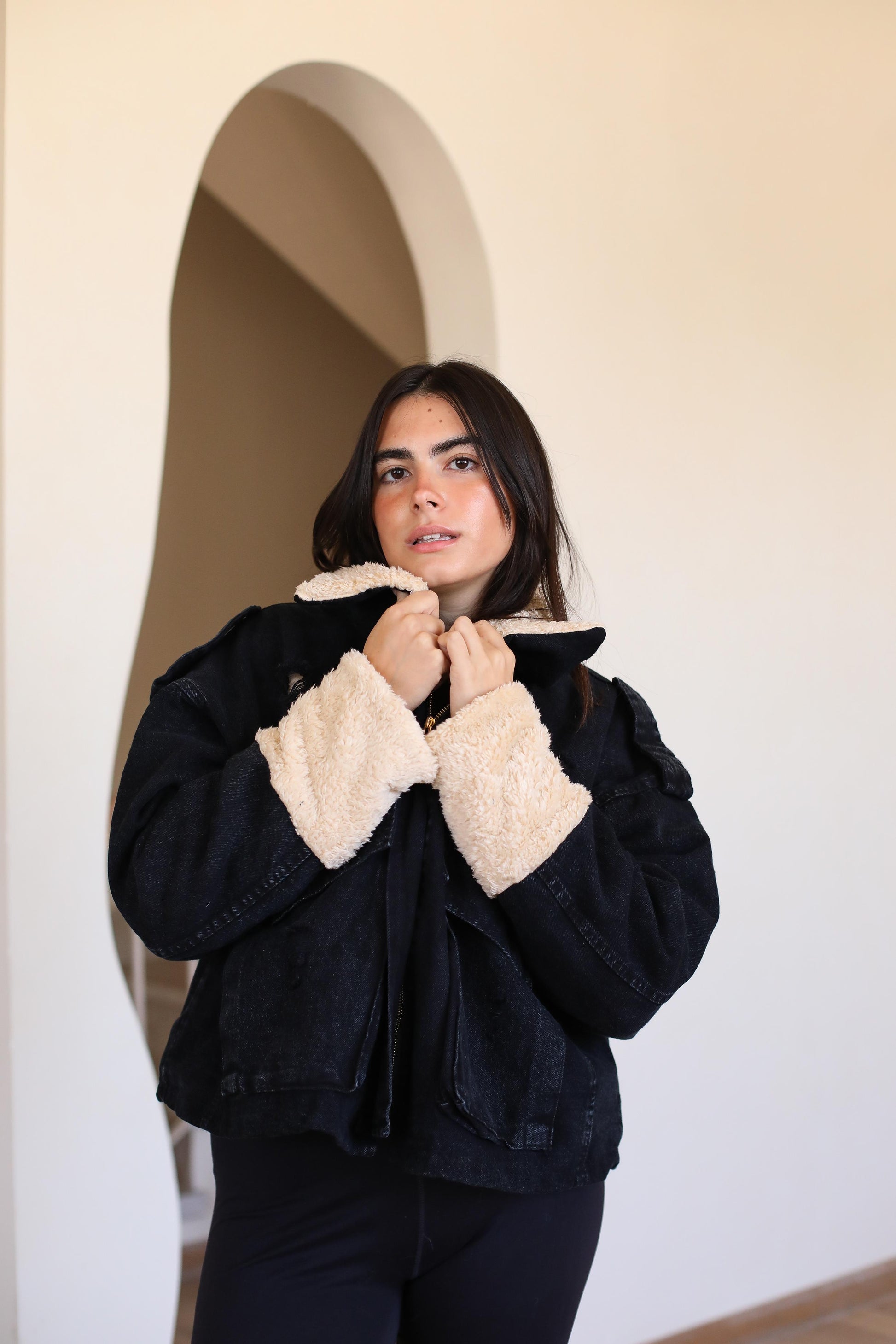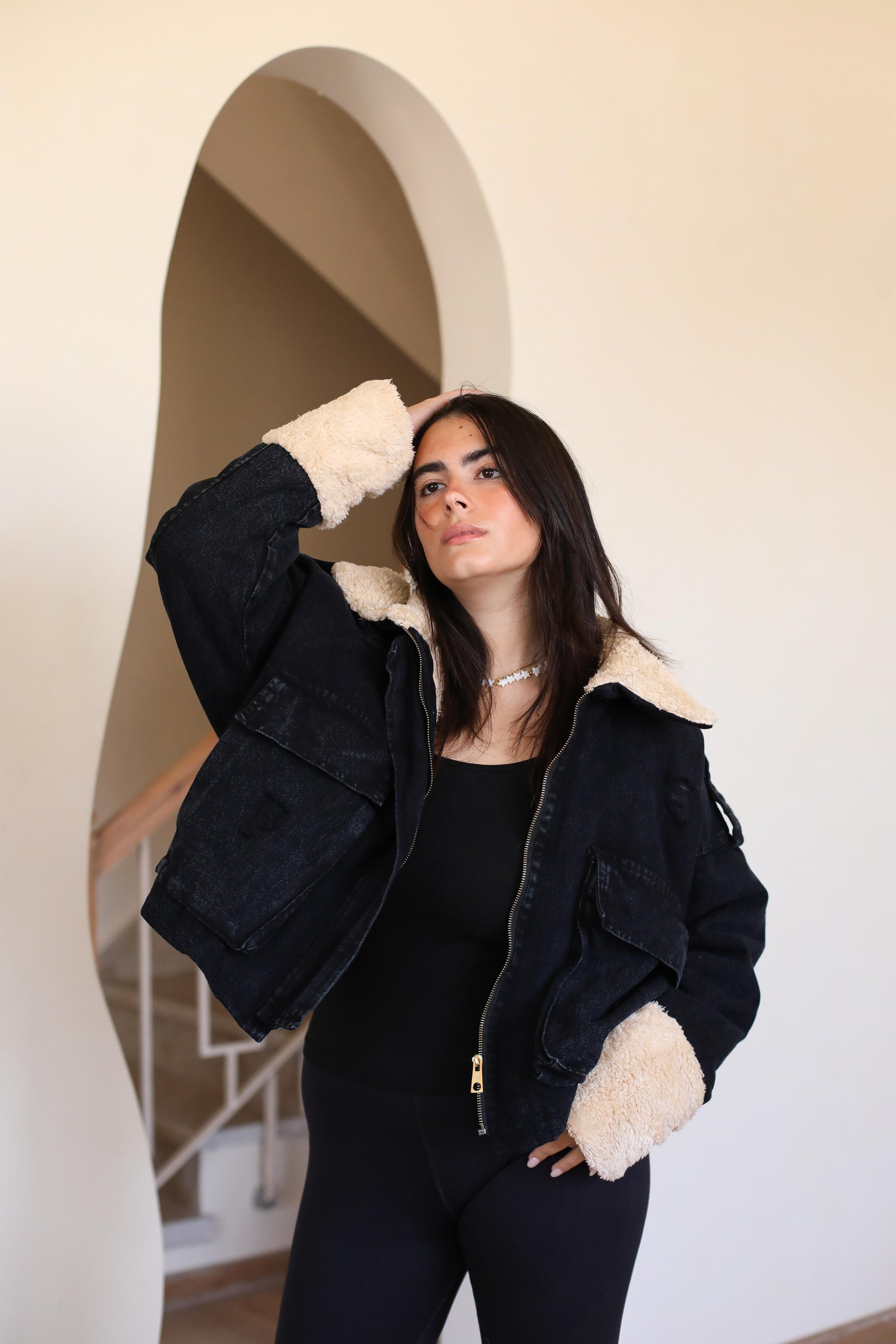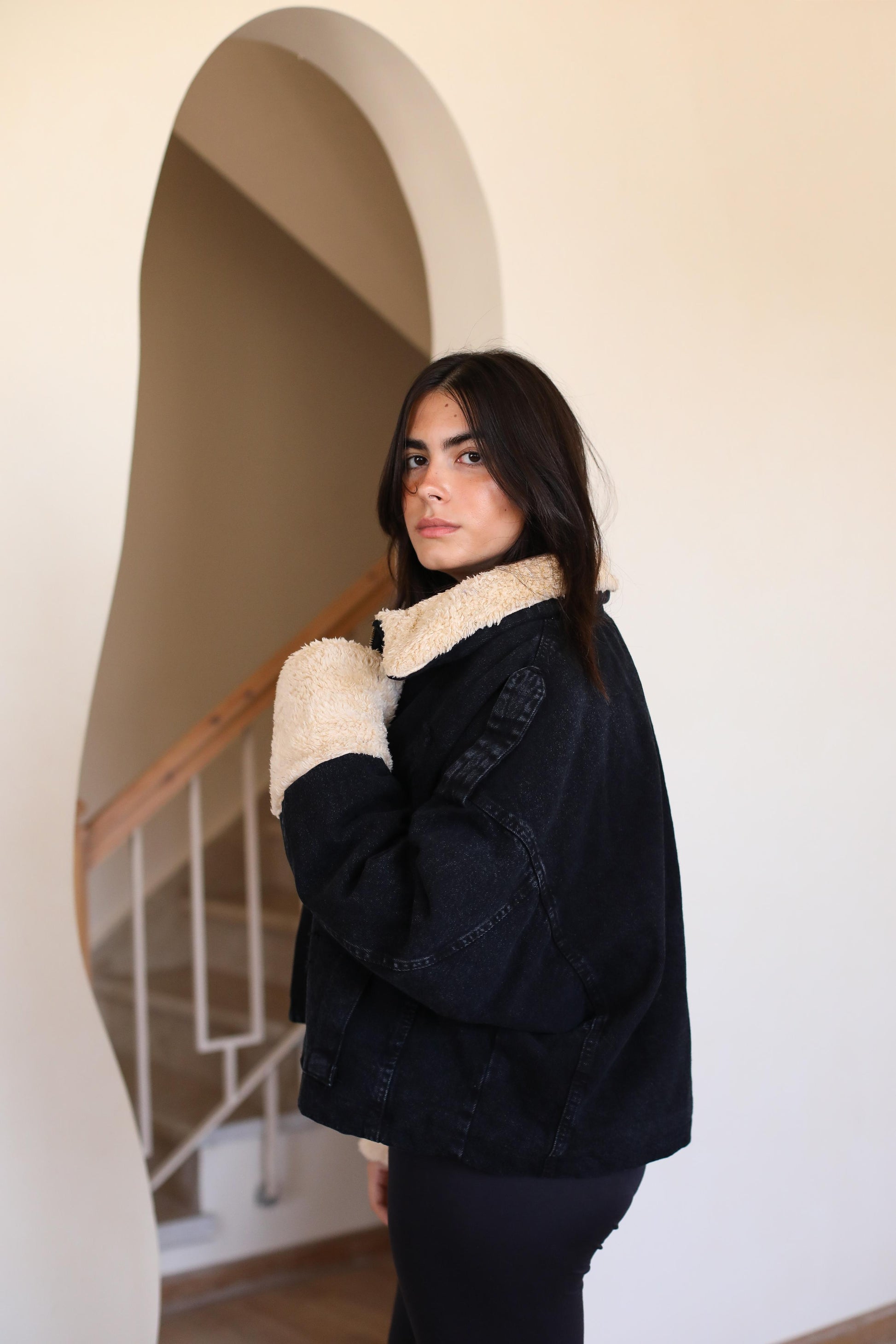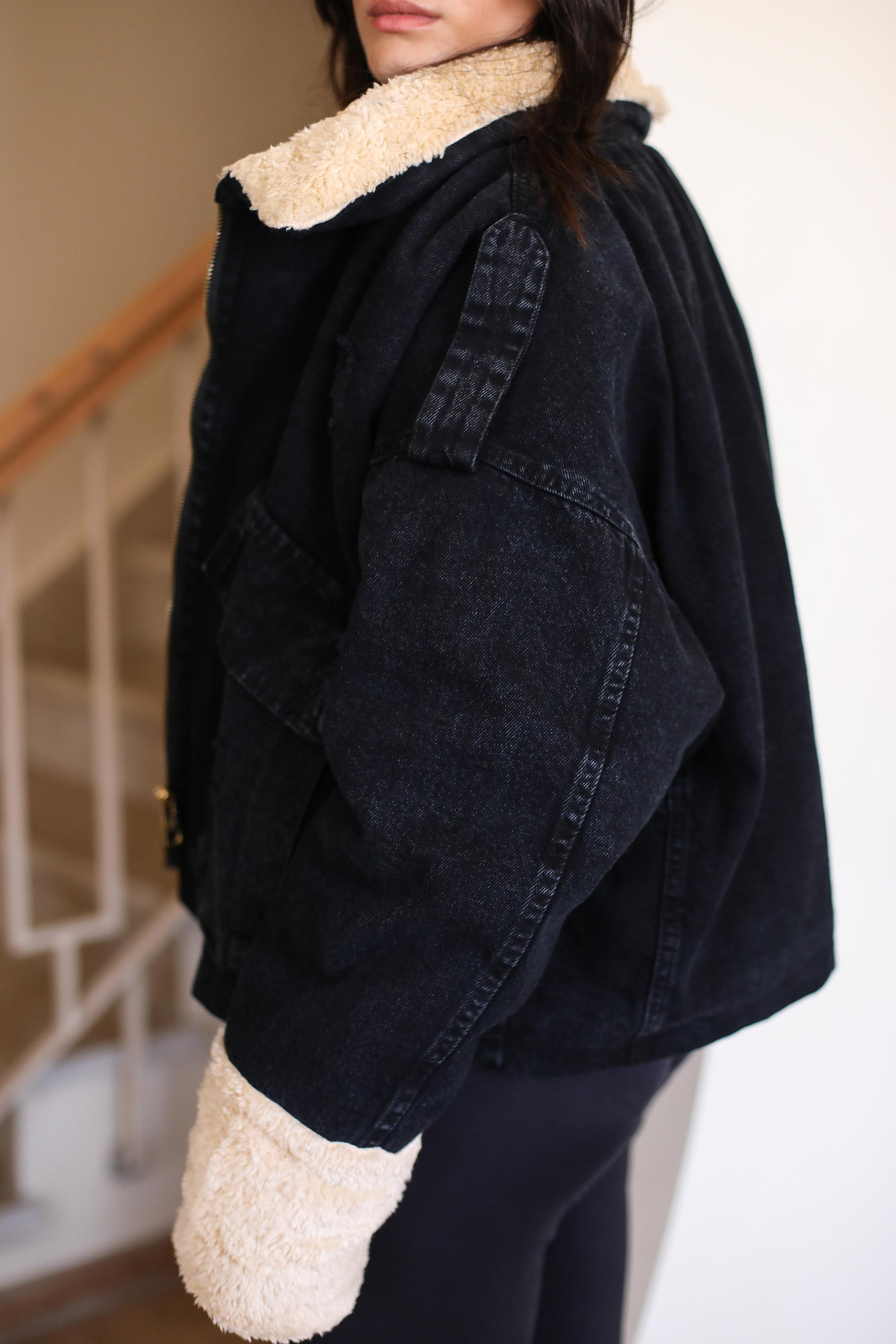 Oversize-fit denim jacket in non-stretch denim. Collar, metal zipper