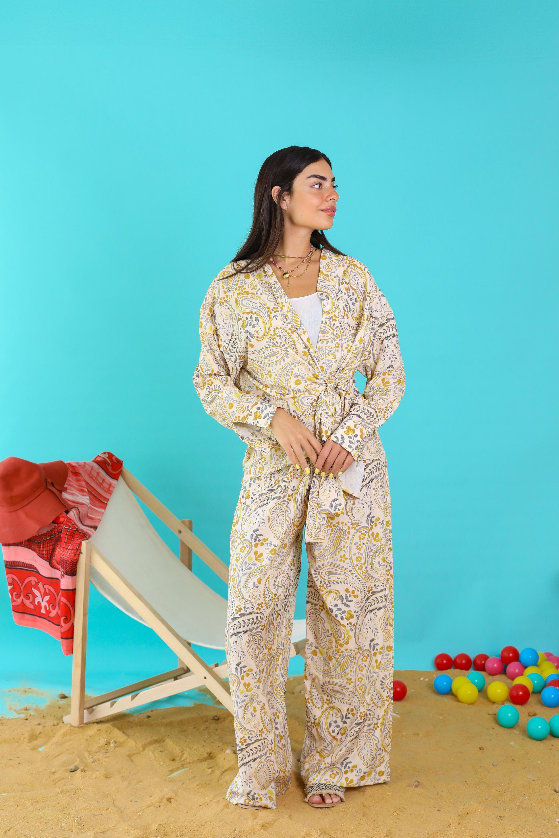 Designed for your getaways and golden-hour strolls, this relaxed-fit co-ord captures the calm joy of summer days. Whether you’re beachside or brunch-ready, it moves with you in effortless elegance.