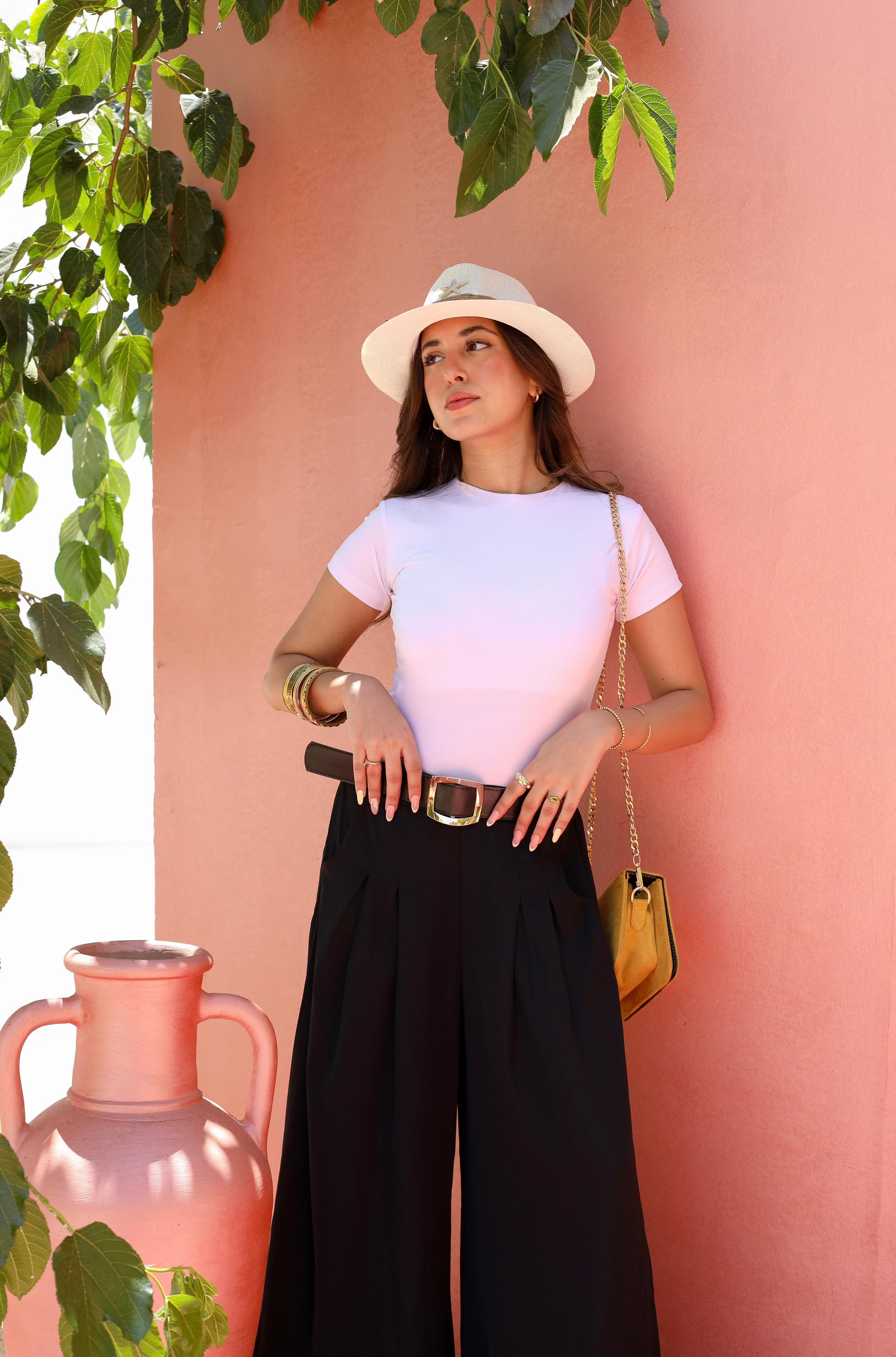 Elevate your everyday look with the Sway Pants – wide-leg tailored trousers designed for movement and ease. Crafted from a fluid, lightweight fabric with subtle pleats and a flattering high waist, they blend comfort with effortless elegance. Perfect for morning errands or sunset strolls, just add a tucked-in tee and you’re good to go