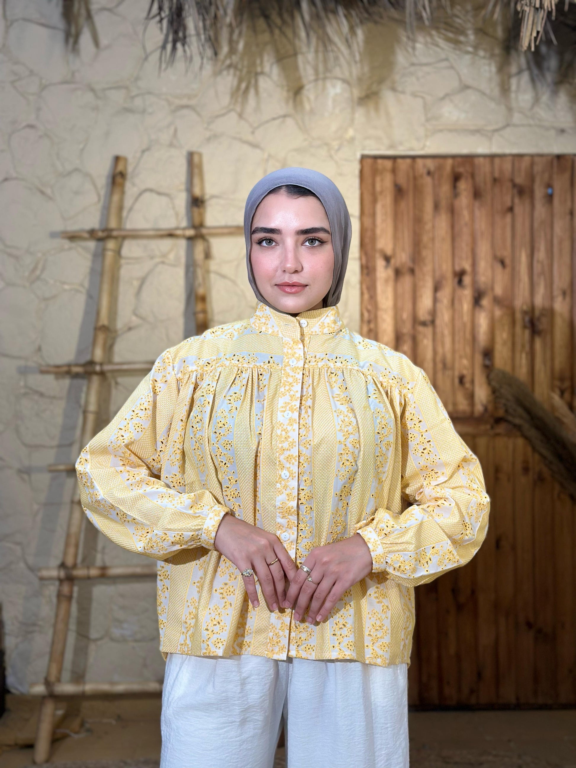Embroidered Yellow Butter Voile Blouse – Light, Elegant & Effortlessly Versatile- yellow butter