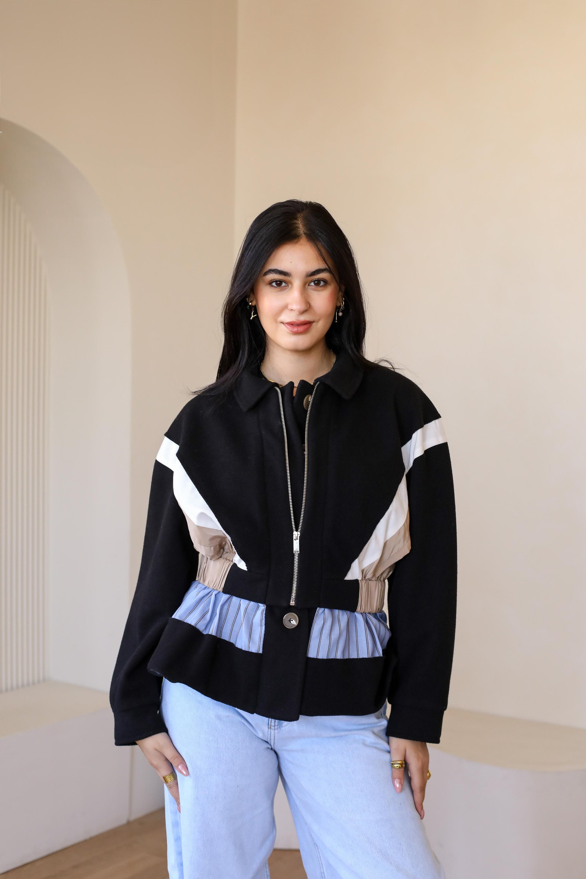 This jacket is mixed fabrics wool and gabardine, warm and stylish
